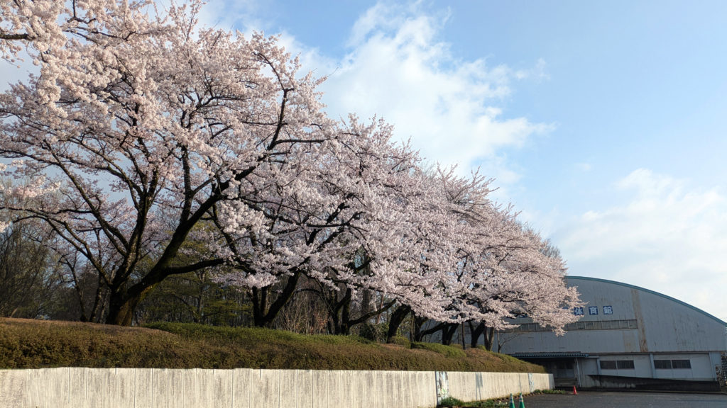 黒沢尻体育館(詩歌の森横)も桜がキレイ。